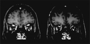 Patients with optic neuritis can have unilateral or bilateral T2 hyperintense lesions of the optic nerve with gadolinium enhancement. The enhancement is usually homogenous, and the nerve will appear thickened and swollen. However, optic nerve enhancement may also demonstrate a heterogeneous pattern, with enhancement of the peripheral fibers of the optic nerve.[37]