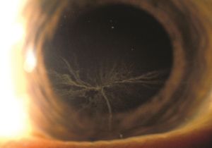 Due to the use of amiodarone in the treatment of life-threatening ventricular and supraventricular arrhythmias, discontinuation should not be taken lightly and needs to always be discussed with cardiology.[13] When amiodarone therapy presents with corneal microdeposits (i.e., vortex keratopathy, Figure 1), the most common ocular side effect, patients can usually continue amiodarone therapy. Cessation of the drug or dose reduction might however be considered for patients with AAON after the risk-benefit of continuing the drug vs worsening of cardiac condition or considering changing to an alternate drug has been discussed with the cardiologist, ophthalmologist and the patient.[6] Because most cases of AAON occur within 12 months of drug initiation, equally spaced interval evaluation within the first year followed by annual examination has been suggested.[14] In a review article it was noted that over half the cases of AAON had improved acuity following drug cessation, around 20% remained the same and another 20% had worsening vision.[2] Unfortunately, there is no screening protocol or defined risk stratification strategy for AAON.