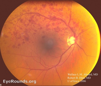 - ↑ Dinn R, Alward W. BRVO (branched retinal vein occlusion). EyeRounds.org. February 8, 2008. Accessed April 7, 2025. https://webeye.ophth.uiowa.edu/eyeforum/atlas/pages/BRVO-Branched-Retinal-Vein-Occlusion.html
