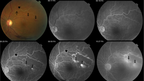 In patients with chronic BRVO, the intraretinal hemorrhages are absorbed and subsequent retinal vascular abnormalities develop in the distribution of the BRVO. The resulting changes include capillary nonperfusion, collateral formation, microaneurysms, sclerosed veins, and telangiectatic vessels (Figure 2).