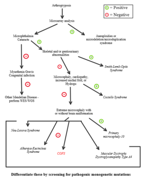 - ↑ 1.00 1.01 1.02 1.03 1.04 1.05 1.06 1.07 1.08 1.09 1.10 1.11 1.12 Sirchia, F., Fantasia, I., Feresin, A., Giorgio, E., Faletra, F., Mordeglia, D., Barbieri, M., Guida, V., De Luca, A., & Stampalija, T. (2021). Prenatal findings of cataract and arthrogryposis: recurrence of cerebro-oculo-facio-skeletal syndrome and review of differential diagnosis. BMC medical genomics, 14(1), 89. https://doi.org/10.1186/s12920-021-00939-6