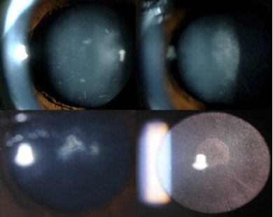Bilateral cataracts, caused by cholestanol buildup in the crystalline lens, usually develop within the first 3 decades of life; often between the ages of 4 and 18 years of age.[14] This manifestation is almost a universal characteristic of CTX and often one of the first findings (first in 75% of individuals).[15] These patients develop irregular cortical opacities, anterior polar cataracts, or dense posterior subscapular cataracts.[14][16] Fleck lenticular deposits may be an early sign of CTX. (Fig. 3) The majority of patients will develop lenticular manifestations prior to significant neurological advancement.