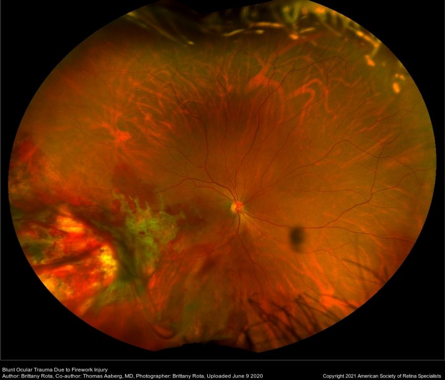 - Benson, W. (undated). Chorioretinitis Sclopetaria After Blunt Trauma. [online] Atlas of Ophthalmology. Available at: https://www.atlasophthalmology.net/photo.jsf;jsessionid=588D5404753884C7F485A595845CFFF9?node=3275&locale=en. Accessed July 15, 2019.