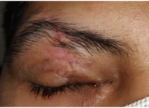 The depth of dermis, amount of elastin, and presence of appendages vary in different areas of the body. Therefore, making the fine, elastic skin of the eyelid more vulnerable to injury. Skin vascularity is derived from a run through underlying muscles or fascial septal layers. If a skin graft is not done, the wound healing occurs by secondary intention with contracture and fibrosis.