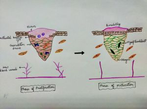 Maturation phase: The maturation phase lasts for 21 days to 2years. Filled in the wound is strengthened and scar tissue is formed. The length of the maturation phase varies. The factors affecting the wound maturation have been summarized in table1