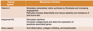 Silicone gel provides a hydrating environment for the epidermal layer, decreases capillary activity, vascularity, and the metabolism of the scar tissue, resulting in reduced collagen deposition.[5] Silicone gel can be applied in the form of silicone gel sheets or in the form of topical silicone gel. In a study performed by Kim et on 30 patients, similar results were observed by using silicone gel topical application as well as by silicone gel sheet application.[6]