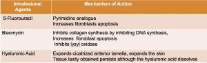 Intra-lesional steroid injections inhibit keratinocyte proliferation, inflammatory compounds and have an anti-angiogenic effect. The dose and regimens vary between 1 to 40 mg/ml at 2–6 weeks’ intervals.[7] The success rate is 40% and 100% for keloids.[8] Whereas, the recurrence rates vary between 9% and 50%.[9] [10] Other agents used for intra-lesional (table 2) and topical application have been summarized in table 3.