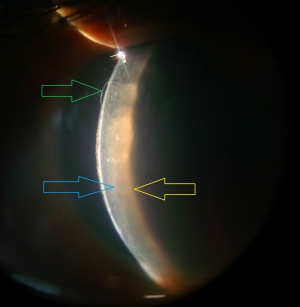Crystalline lens trauma with childhood cataract formation is another possible complication of lamellar corneal graft procedures like DSAEK. To prevent this, some authors have suggested the use topical pilocarpine to induce miosis and thus protect the lens from iatrogenic cataract.[27] Surgical manipulation and instrumentation should also be directed away from the crystalline lens.