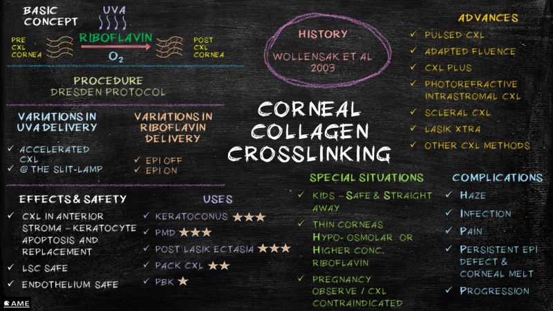 Corneal collagen cross-linking (CXL) is a minimally invasive procedure used to prevent progression of corneal ectasias such as keratoconus and post-LASIK ectasia.