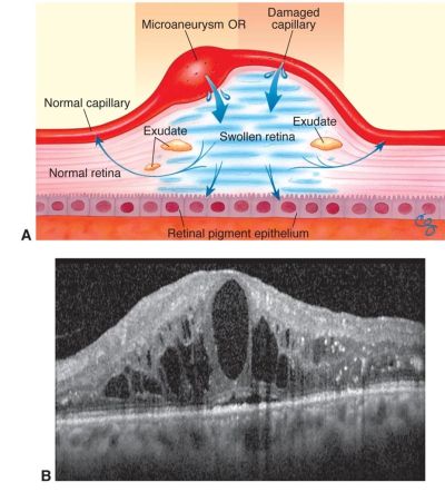 - ↑ Das A, McGuire PG, Rangasamy S. Diabetic macular edema: pathophysiology and novel therapeutic targets. Ophthalmology. 2015;122(7):1375-1394.