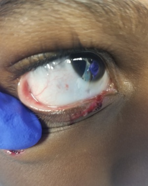 In the United States of America for example, approximately 4.5 million people are bitten by dogs every year,[1] resulting in significant morbidity and even mortality. The majority of the bites occur on the dog owner's property and most of those bitten are children. Periocular injuries are common with dog bites, particularly from pit bulls. These injuries can result in a diverse set of periocular complications including damage to the canaliculi, facial nerve, levator muscle, lacrimal gland, rectus muscles, bony orbit and globe [2]. [3], [4]. Management of dog bites in the periocular location has some distinct considerations which will be discussed below.