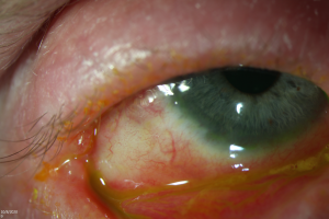 Dupilumab-induced conjunctivitis ranges from mild to severe blepharitis, conjunctivitis, and keratoconjunctivitis. The diagnosis is made clinically based on history and ophthalmic examination.