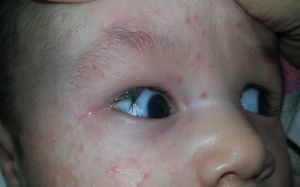 Epiblepharon is a horizontal fold of redundant skin and orbicularis at the eyelid margin causing the lashes to be directed vertically or invert to a small degree. This condition is common in Asian populations and is present in 46-52.5% of Asian children less than a year old.(Kim) This condition usually asymptomatic and resolves with age, but in extreme and persistent cases surgical management may be indicated if corneal injury is imminent.[23]