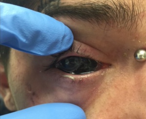 Globe penetration: Elevated risk of penetrating injury to the eye which may cause vitreous or subretinal hemorrhage, traumatic cataract and retinal detachment. Patients are at risk of infections such as endophthalmitis and orbital cellultis.[17] There has also been a case reported of penetrating ocular injury following self-administered ocular tattoos.[18]