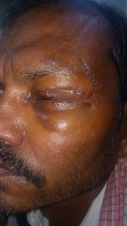 It is a lateral forehead flap for large defect including the lateral canthus. It was first described by Jochim Fricke in 1829[27]. The flap should be shaped along the curve of the eyebrow up to the medial end. A laterally based skin flap above the eyebrow is raised and sutured using 5-0 or 6 -0 suture to the defect area. The donor area is closed directly. (Figure 17) Posterior lamella may now be constructed using a reverse Hughes tarsoconjunctival flap or free mucous membrane graft. After 2 weeks, the flap is divided.(Figure 18)