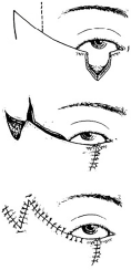 - ↑ Tyers AG, Collin JRO. Colour Atlas of Ophthalmic Plastic Surgery. 4th ed. Elsevier Health Sciences,2018.Chapter 17: Eyelid reconstruction – anterior and posterior lamella combined; p.449-50.