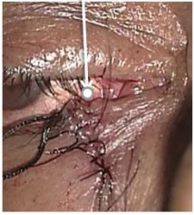 - ↑ Malik A, Shah-Desai S. Sliding tarsal advancement flap for upper eyelid reconstruction. Orbit 2014;33(02):124–126.