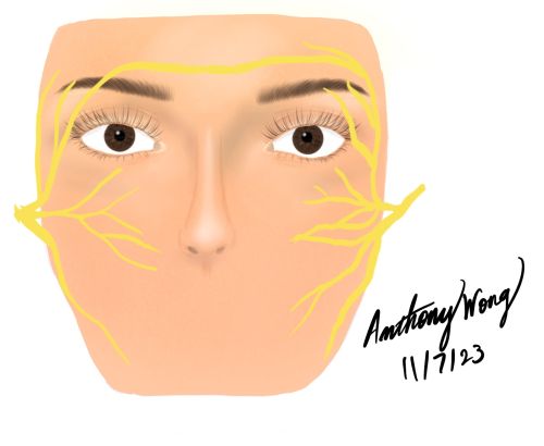 - ↑ 4.0 4.1 4.2 4.3 4.4 Seneviratne SO, Patel BC. Facial Nerve Anatomy and Clinical Applications. 2023 May 23. In: StatPearls [Internet]. Treasure Island (FL): StatPearls Publishing; 2023 Jan–. PMID: 32119456.