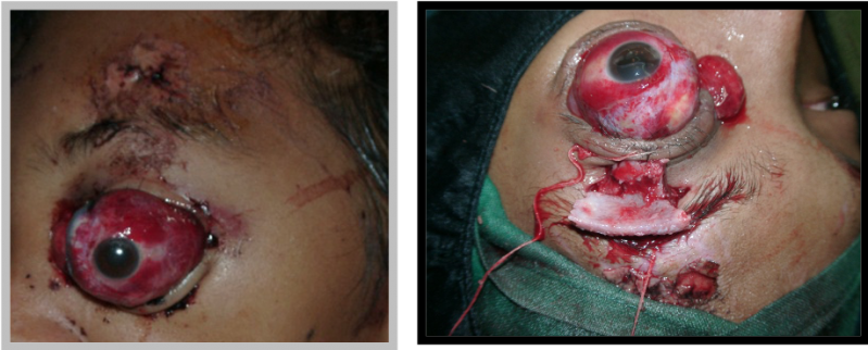 Figure 5. Globe luxation with superior orbital rim fracture[29]