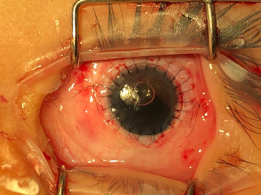 immediate postoperative of penetrating keratoplasty (PK) of total sclerocornea - photo by courtesy of Maria Emília Xavier dos Santos Araújo PhD