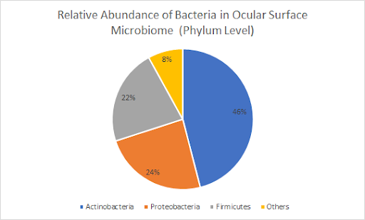 Describes three most abundant bacteria (phylum level) typically seen in ocular surface microbiome.