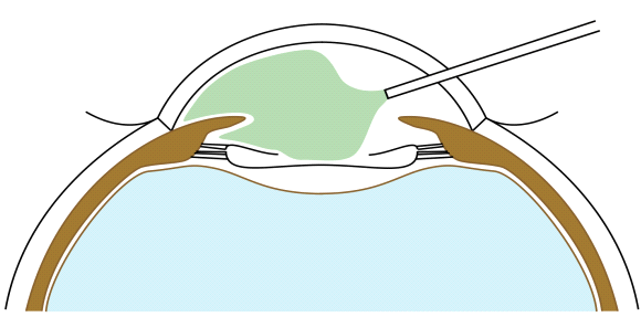 Injection of viscoelastic product on the top of the remaining anterior capsule (not in the bag)
