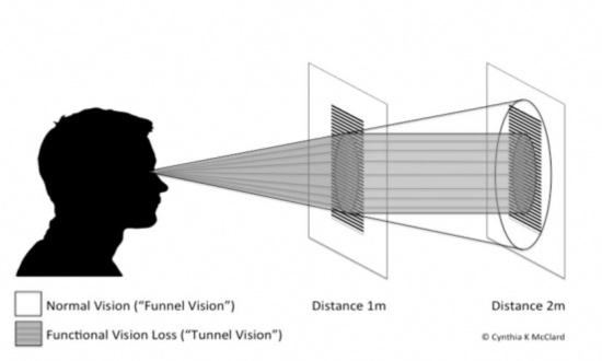 - Tunnel (rather than funnel) configuration of confrontation visual field testing or tangent screen [8] (see image below).