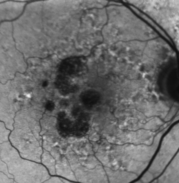 Ophthalmoscopy with visualization of the fundus, enables the trained ophthalmologist to observe drusen, as well as the atrophic area. In some cases, the atrophic area is unifocal, but in many cases, it shows as a multifocal disease within the macula area.