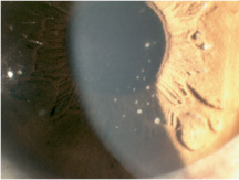 | Fuchs Heterochromic Iridocyclitis | Iris heterochromia, diffuse atrophy Fine abnormal angle vessels on gonioscopy Posterior subcapsular cataract |