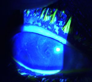 Hurricane keratopathy, or hurricane keratitis, was first described after penetrating keratoplasties by Mackman et al.[1] It is characterized by a whorled pattern seen in the epithelial layer that is highlighted by fluorescein. It appears to be due to increased corneal epithelial turnover, which is also seen in rigid contact lens wearers and with long-term steroid use [2][3]