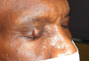 Spontaneous rupture with transconjunctival leakage of the keratinous material may occur and cause eye irritation.[12]