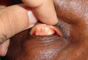 Exam typically reveals a clearly visible lump on the skin aspect of the upper eyelid that felt firm and nonfluctuant, nontender, and fixed to the tarsus. The overlying skin is freely mobile over the nodule without focal adhesion or signs of skin inflammation. IKCs are typically solitary lesions. On eversion of the eyelids, the lesion is visible through the palpebral conjunctival surface, appears as a well-defined, elevated, whitish, yellow white, or bluish intratarsal mass, and the surrounding conjunctiva is not inflamed.[10][9]