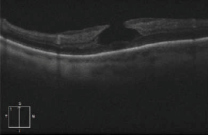 - Dehiscence of the inner foveal retina from the outer retina;