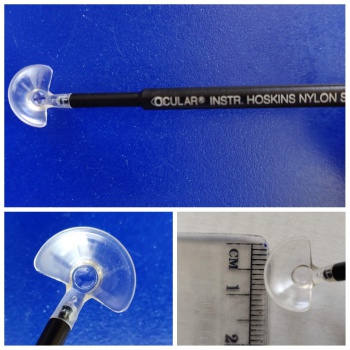 Elementally all the lenses serve the same purpose. They not only prevent eye blinking, but also help in applying gentle pressure and blanching the underlying conjunctiva, thus providing good visualization of the small nylon sutures. The lenses used are summarized in Table 1