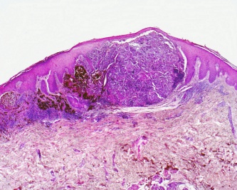 - Nodular melanoma - This is predominantly characterized by a vertical growth pattern, usually composed of epithelioid type cells.