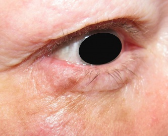 Primary melanomas of the eyelid skin are rare. They account for <1% of all cutaneous malignant melanomas, <7% of head and neck melanomas, and about 1% of malignant eyelid tumors. The peak incidence of any head and neck melanoma is in 50-80 year olds, approximately 20 years later than cutaneous melanomas of other sites. The most common location of eyelid melanomas is the lower eyelid, where it is approximately 2.6 times more likely to occur than the upper eyelid. [2]