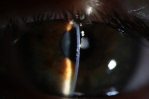 Like any ophthalmic chemical exposure, removing the offending agent and ensuring anterior segment stabilization is important. Prompt ocular irrigation with saline solution and measurement of ocular pH is advisable. Interestingly, in-vitro studies have demonstrated a direct benefit to treatment with topical dexamethasone as it is able to up-regulate Na+/K+-ATPase activity in the corneal endothelium and expedite corneal recovery[4]. Concurrent use of a hypertonic agent, such as 5% sodium chloride, can also decrease corneal edema via an osmotic effect. Patient should be monitored closely with daily exams until clinically stabilized. Fortunately, most patients recover in a matter of days with no residual sequela.