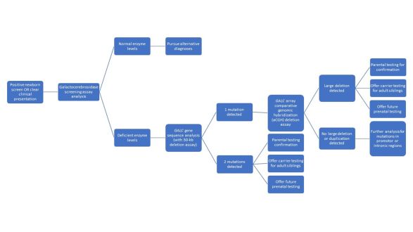 A diagnostic algorithm summarizing the steps clinicians should take when evaluating patients for Krabbe disease is shown below.