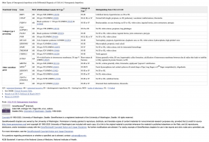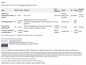 - ↑ 2.00 2.01 2.02 2.03 2.04 2.05 2.06 2.07 2.08 2.09 2.10 2.11 2.12 2.13 Steiner RD. COL1A1/2 Osteogenesis Imperfecta. GeneReviews® [Internet]. https://www.ncbi.nlm.nih.gov/books/NBK1295/. Published September 19, 2019. Accessed October 2, 2019.