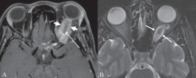 - ↑ Chavhan G. B., Shroff M. M., CC BY 2.0 <https://creativecommons.org/licenses/by/2.0>, via Wikimedia Commons https://commons.wikimedia.org/wiki/File:Optic_nerve_sheath_meningioma.png Accessed June 7, 2020.