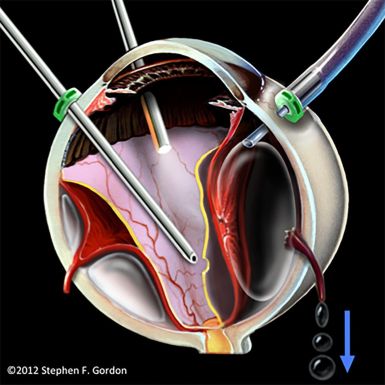 From the suprachoroidal space, the air can travel down the following pathway: vortex veins, ophthalmic veins, cavernous sinus, jugular veins, and eventually into the right atrium and ventricle. [3] Apart from vitrectomy, OVAE can also occur when air from the vitreous cavity enters intact vortex veins through large choroidal wounds which can occur secondary to trauma or choroidal melanoma resection.[2]