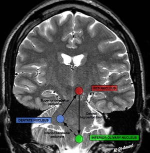 - ↑ 12.0 12.1 Tilikete C, Desestret V. Hypertrophic Olivary Degeneration and Palatal or Oculopalatal Tremor. Front Neurol. 2017;8:302. Published 2017 Jun 29. doi:10.3389/fneur.2017.00302