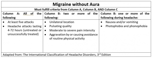 The clinical diagnosis of migraine is based on patient history, physical examination, and fulfillment of specific ICHD-3 diagnostic criteria (see below).