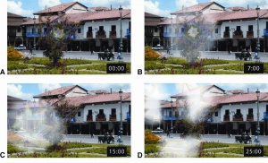 Visual aura of migraine. A. Starts with a small scotoma usually central that is scintillating, colored, fortifying and expanding towards the periphery (B–C) that eventually breaks up (D). The times shown represent minutes from the onset of the visual aura.