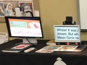 Video magnifiers (or closed-circuit television) systems use a mounted or handheld camera to project a magnified image onto a separate screen. They are ergonomically sound and offer the highest degree of magnification, but their cost may be prohibitive.[24] Smartphone applications, as well as artificial intelligence technology, have contributed significantly to the available assistive technology for individuals of all ages with low vision. For example, Siri and Alexa, operate using voice recognition and do not require visual cues or interaction. Audiobooks, screen readers for email and audio conversion for text messaging, are additional resources that can significantly impact individuals of all ages living with low vision. The American Foundation for the Blind offers a list of low vision assistive technology.