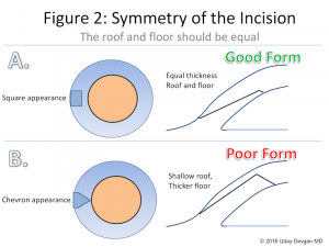 A small central or midperipheral PCR with a tag can be extended circumferentially to a form a PCCC. This technique was introduced by Gimbel and Neuhann to prevent the formation of Posterior Capsular Opacification (PCO).[39] It gives the posterior capsule strength in the same way as the anterior capsule.[40] It is imperative to fill up the AC just enough to flatten the PC. Overfilling may push the tag posteriorly into the vitreous, making it difficult to initiate the capsulorhexis. The technique is performed using micro-capsulorhexis forceps and is possible only If the PCR is away from the equator. Once an intact PCCC is achieved, IOL can safely be implanted in the capsular bag.