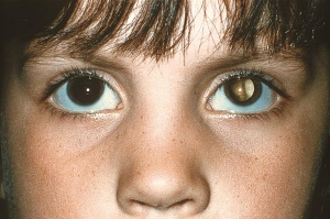 Leukocoria should immediately make the clinician think of retinoblastoma. However, the differential diagnosis includes other entities such as a cataract, Coats’ disease, retinopathy of prematurity, toxocariasis, choroidal coloboma, vitreous hemorrhage, myelinated retinal nerve fibers, and other retinal tumors such as astrocytic hamartoma. Corneal opacities can also produce a white reflex, but this can be easily differentiated by more thorough clinical exam. Differentiating retinoblastoma from conditions such as Coats’ disease, persistent fetal vasculature (PFV), or toxocariasis can be a clinical challenge.