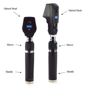 Most retinoscopes used today utilize Copeland’s streak projection system and consist of three main parts: the head, neck, and handle.