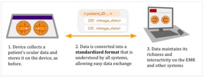 In the daily practice of ophthalmology, these technological communication barriers are very prevalent. In your practice, you likely rely on many different devices, each storing a treasure trove of patient data, all running on different software systems. For example, your patients’ charts are managed in an EMR. Their visual field data is collected and stored on a separate machine with its own software system. And their OCT reports are on another device and yet another software system. If each of these systems speak different languages, they can’t easily “communicate”, or share their data, with each other.