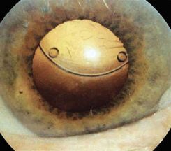 The term Sunrise Syndrome and/or Sunset Syndrome refers to the IOL-associated cataract complication, which often occurs early due to improper IOL fixation within the capsular bag, resulting in IOL misplacement.[1] It depends on haptics positioning and asymmetric bag-sulcus placement. Both can present later following ocular injury, capsular or zonular disruption and contracture.[2] Sunrise syndrome most commonly occurs due to the misplacement of the superior haptic in the ciliary sulcus, while the inferior one is placed into the capsular bag, that allows the IOL to subluxate superiorly. The direction and extent of the subluxation depends on haptics positioning and asymmetric bag-sulcus placement during surgery.[2] Sunset syndrome can develop when the opposite is true, when the inferior haptic is improperly placed in the ciliary sulcus. Alternatively, Sunset syndrome may occur from undetected anterior capsule rupture extending inferiorly allowing the inferior haptic of PCIOL to escape through the defect, leading to downward IOL displacement. When comparing to an IOL misplacement, a properly placed "lens in the bag complex" can sublux in any direction for a number of reasons with similar presentation and appearance. Dead Bag Syndrome can also present with lens subluxation.